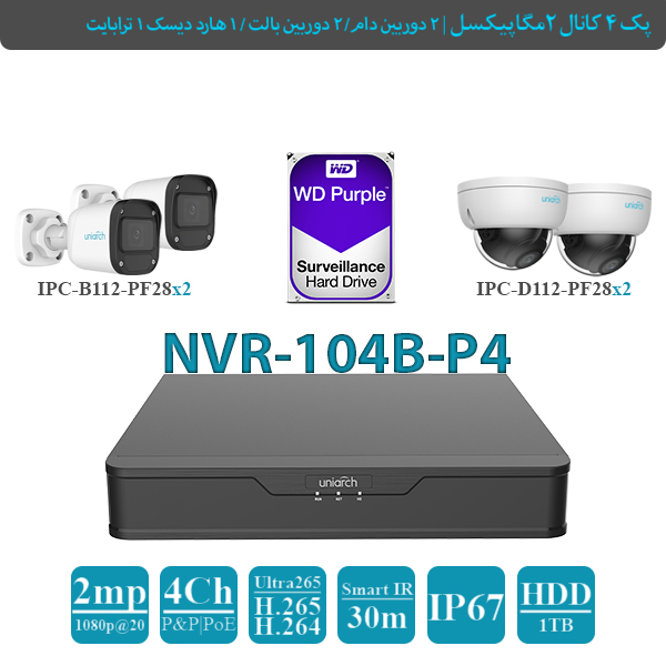 - 1× NVR یونی آرک 4 کانال PoE مدل NVR-104B-P4